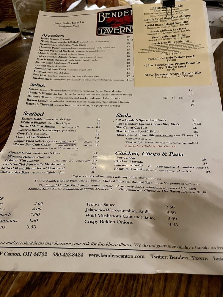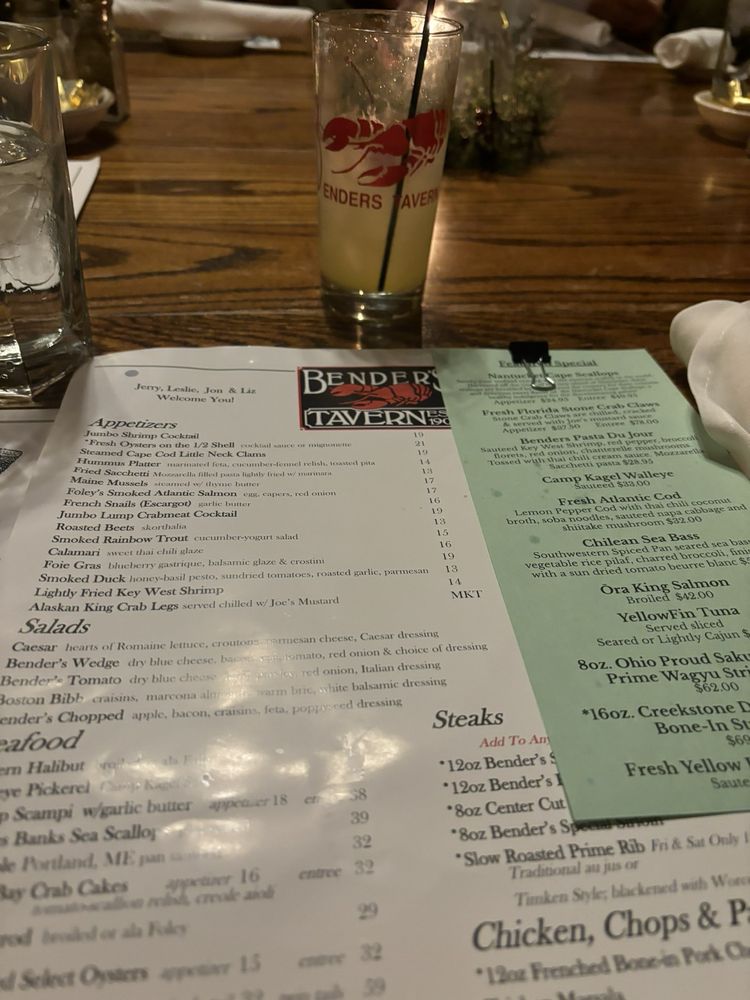 Introducing the menu at Bender's Tavern, a classic Canton eatery offering steaks, American cuisine, and seafood delights. With a classy ambiance and moderate noise level, Bender's Tavern provides a perfect setting for a casual lunch or dinner. From jumbo shrimp cocktail and fresh oysters to smoked duck and crab cakes, the appetizers boast a wide range of flavorful options. The soup du jour and Bender's wedge salad are must-tries, while the Bender's tomatoes and fries come highly recommended as side dishes. Seafood lovers will delight in the Nantucket Bay Scallops, known for their amazing flavor. The restaurant's focus on top-notch food and service, along with its historic charm, make it a go-to spot in Canton. Don't miss out on the exceptional steaks, seafood specialties, and impeccable dining experience at Bender's Tavern.